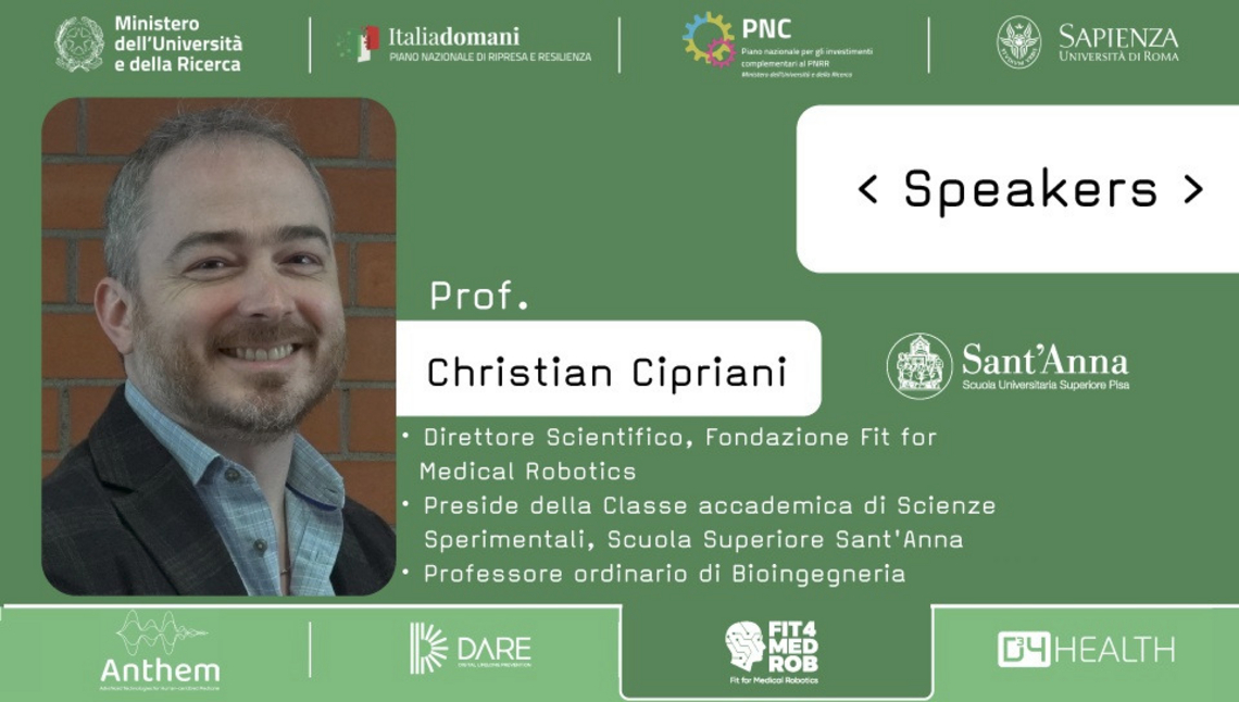 Tra gli speaker della Giornata dedicata alla Salute 5.0 (“Salute 5.0 e Ricerca: le Iniziative del Piano Nazionale Complementare al servizio del Futuro Digitale della Sanità”), in programma l’11 novembre 2025 alla Sapienza di Roma, interverrà il Prof. Christian Cipriani, Direttore Scientifico dell’Iniziativa Fit for Medical Robotics.